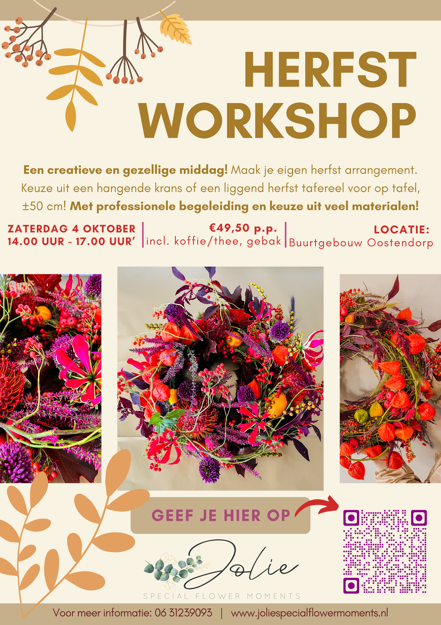 Liever zelf creatief aan de slag? Volg een workshop droogbloemenring bij ons! Gezellig met vriendinnen, collega's of als activiteit op een vrijgezellenfeest of babyshower.